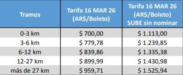 Con el nuevo cuadro tarifario, el pasaje mínimo pasará de $650 a $700 para quienes paguen con tarjeta SUBE registrada o medios de pago electrónicos. La suba se suma al incremento aplicado en febrero y acumula un 41% en apenas un mes.