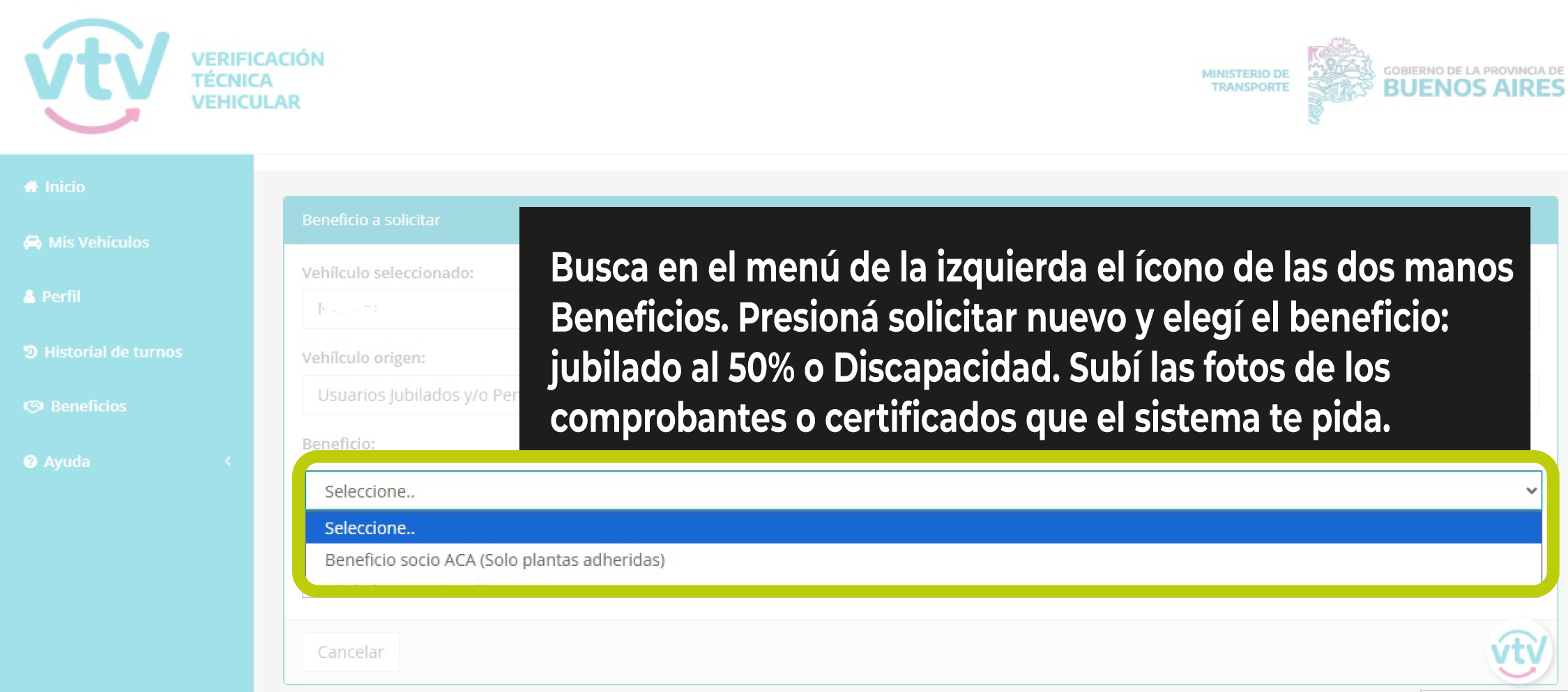 Para acceder al beneficio, se deberán realizar los siguientes pasos en el sitio www.portal.vtv.ga.gob.ar: